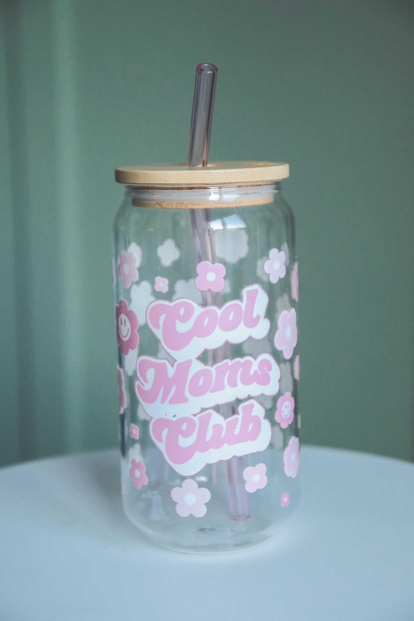 Cool Moms Club Glass with Bamboo Lid and Straw