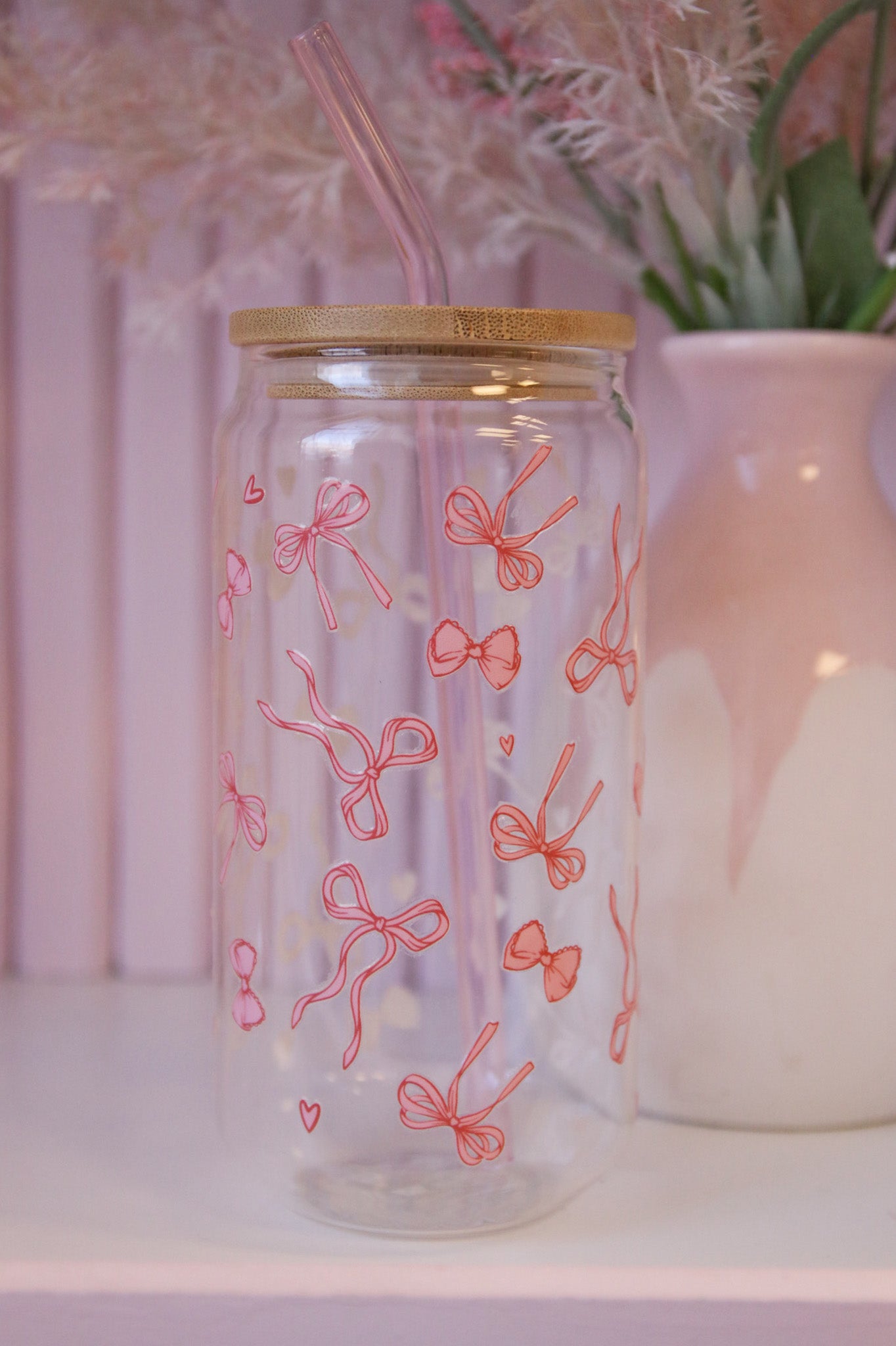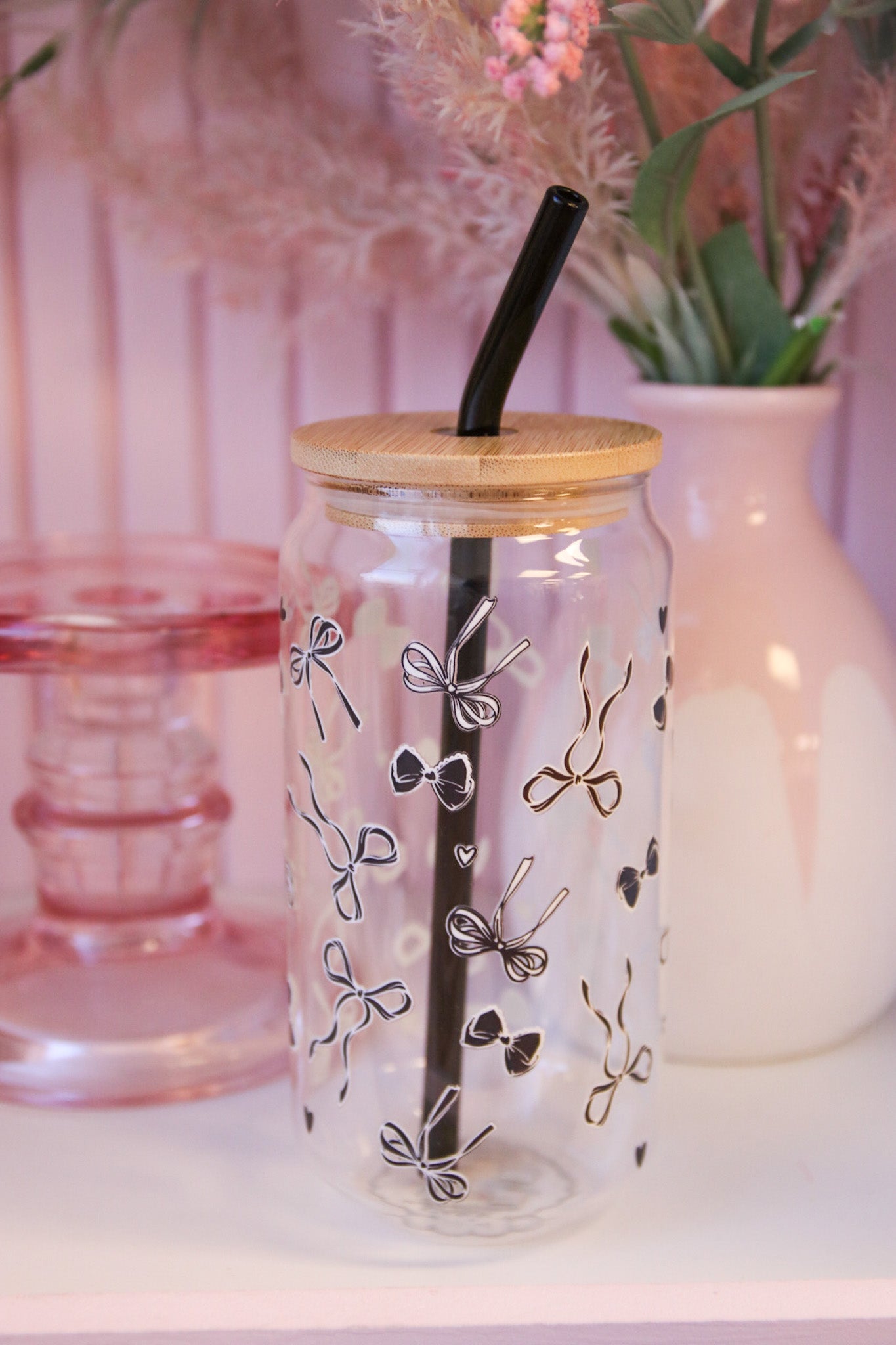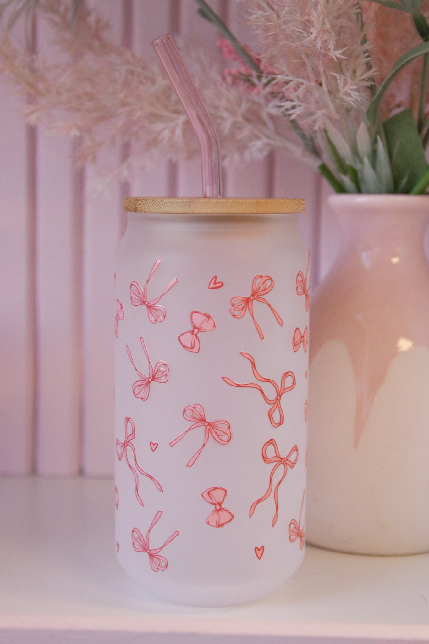 Featuring a custom printed UV-DTF graphic and available in a clear or frosted glass with your choice of coloured or clear straw