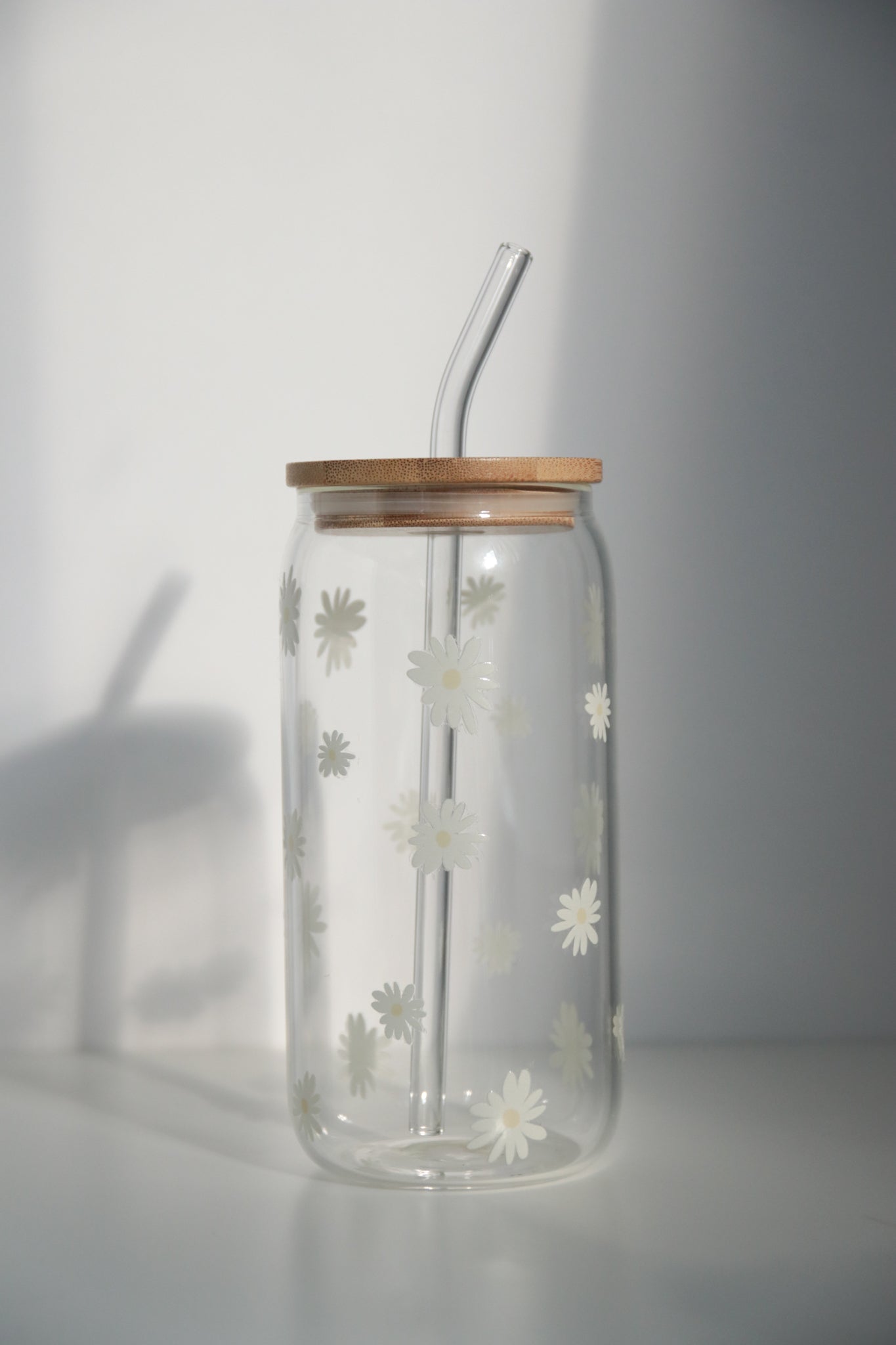 Daisy Glass with Bamboo Lid and Straw