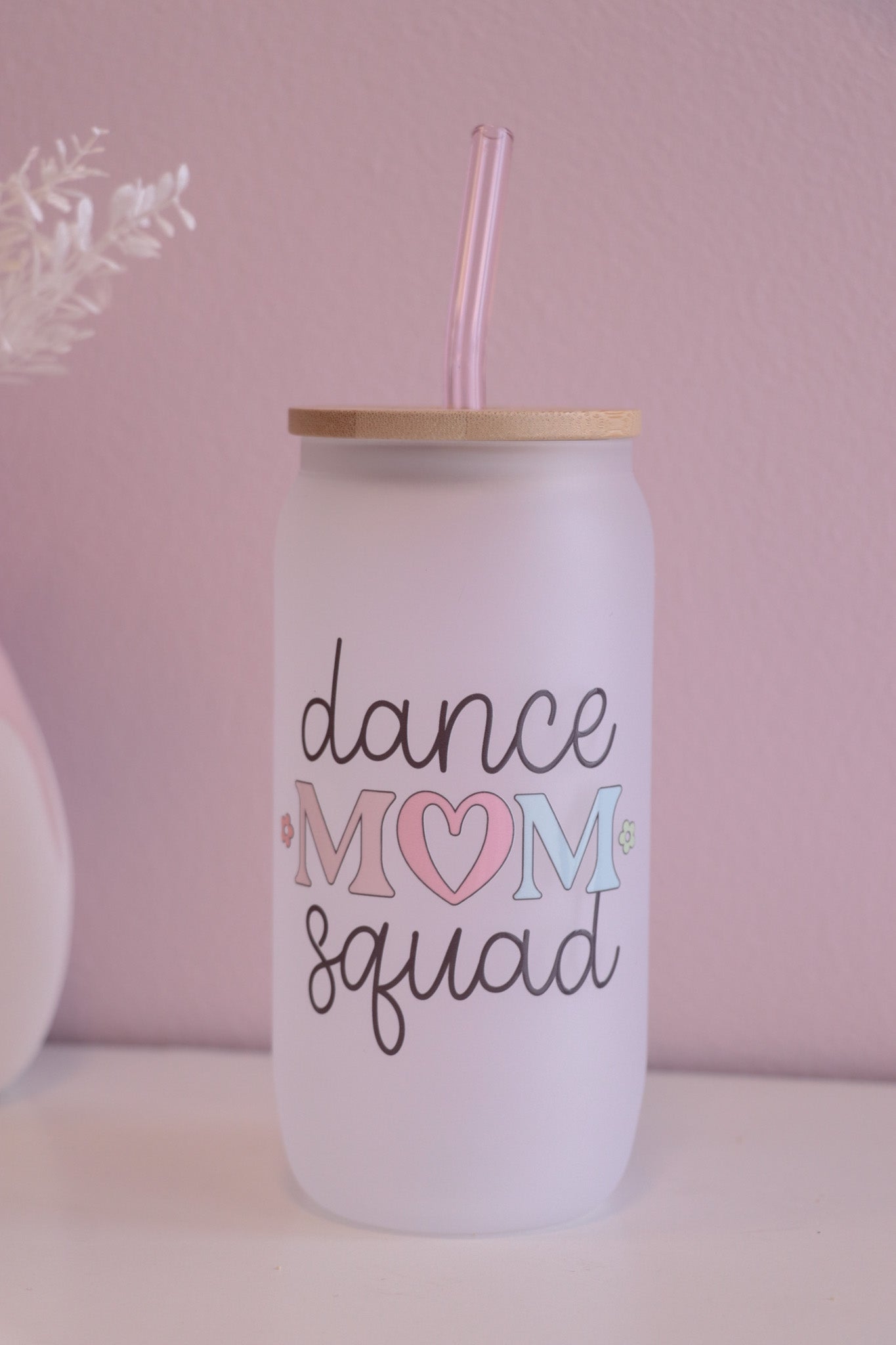Calling all dance moms Featuring a custom printed UV-DTF graphic and available in a clear or frosted glass with your choice of pink or clear straw