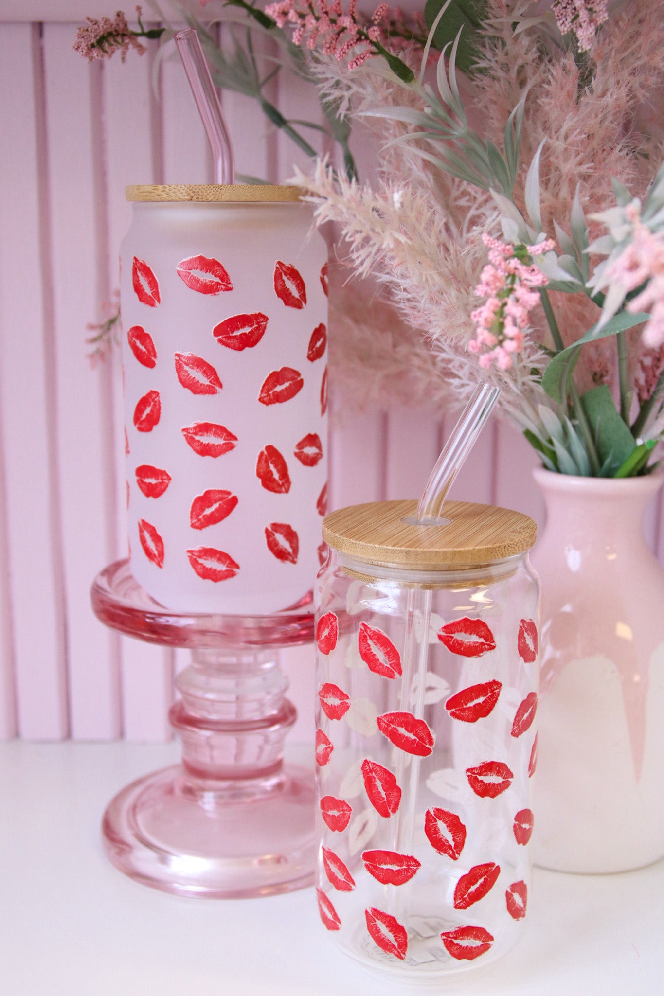 Featuring a custom printed UV-DTF graphic and available in a clear or frosted glass with your choice of coloured or clear straw
