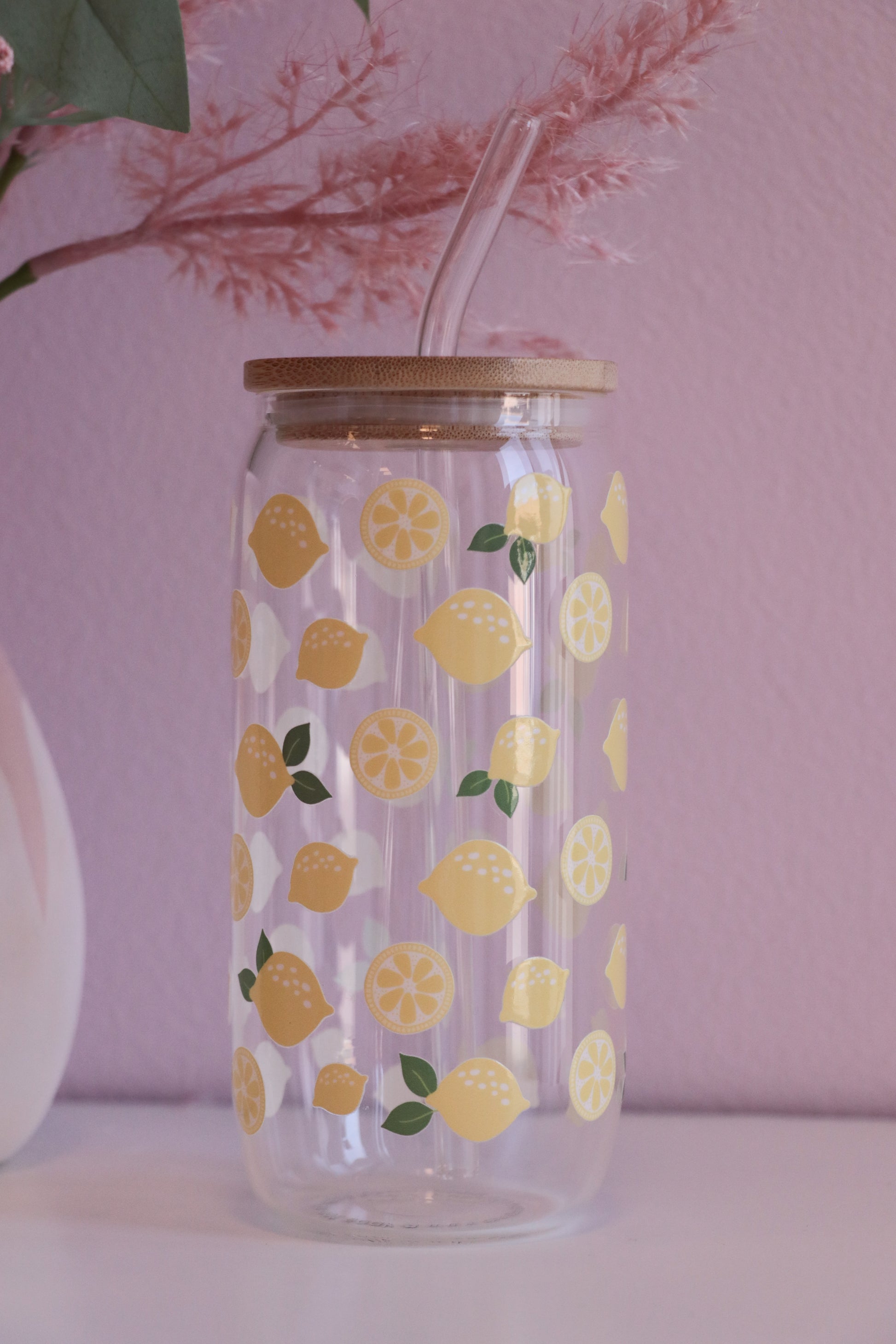 Featuring a custom printed UV-DTF graphic and available in a clear or frosted glass with your choice of pink or clear straw