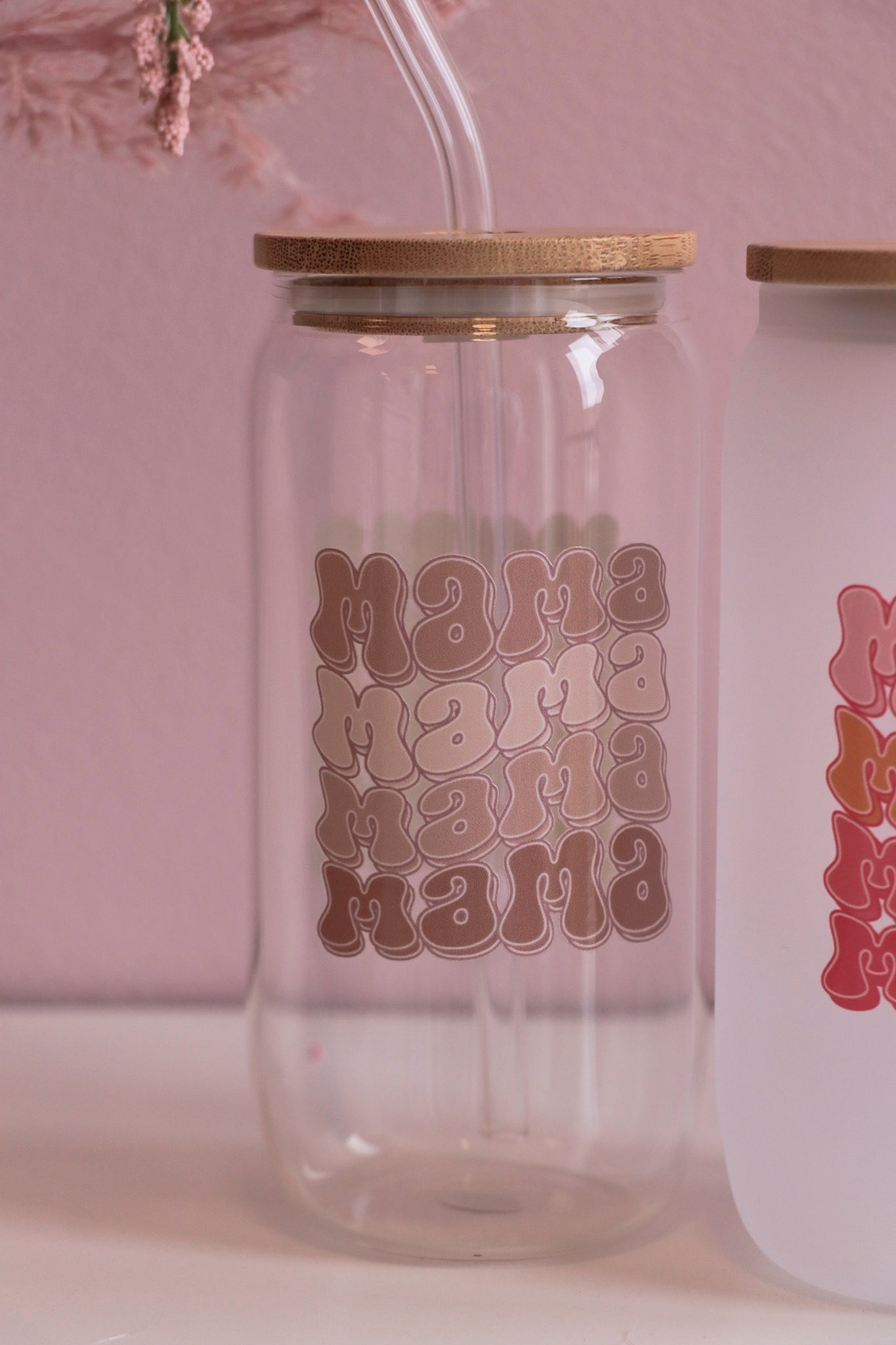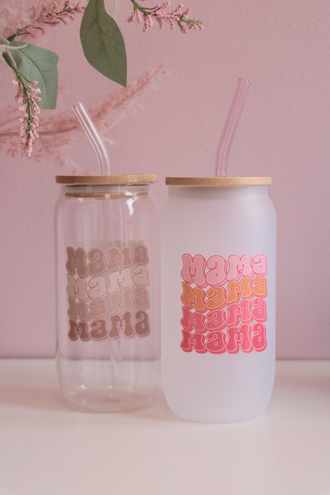 Featuring a custom printed UV-DTF graphic and available in a clear or frosted glass with your choice of pink or clear straw