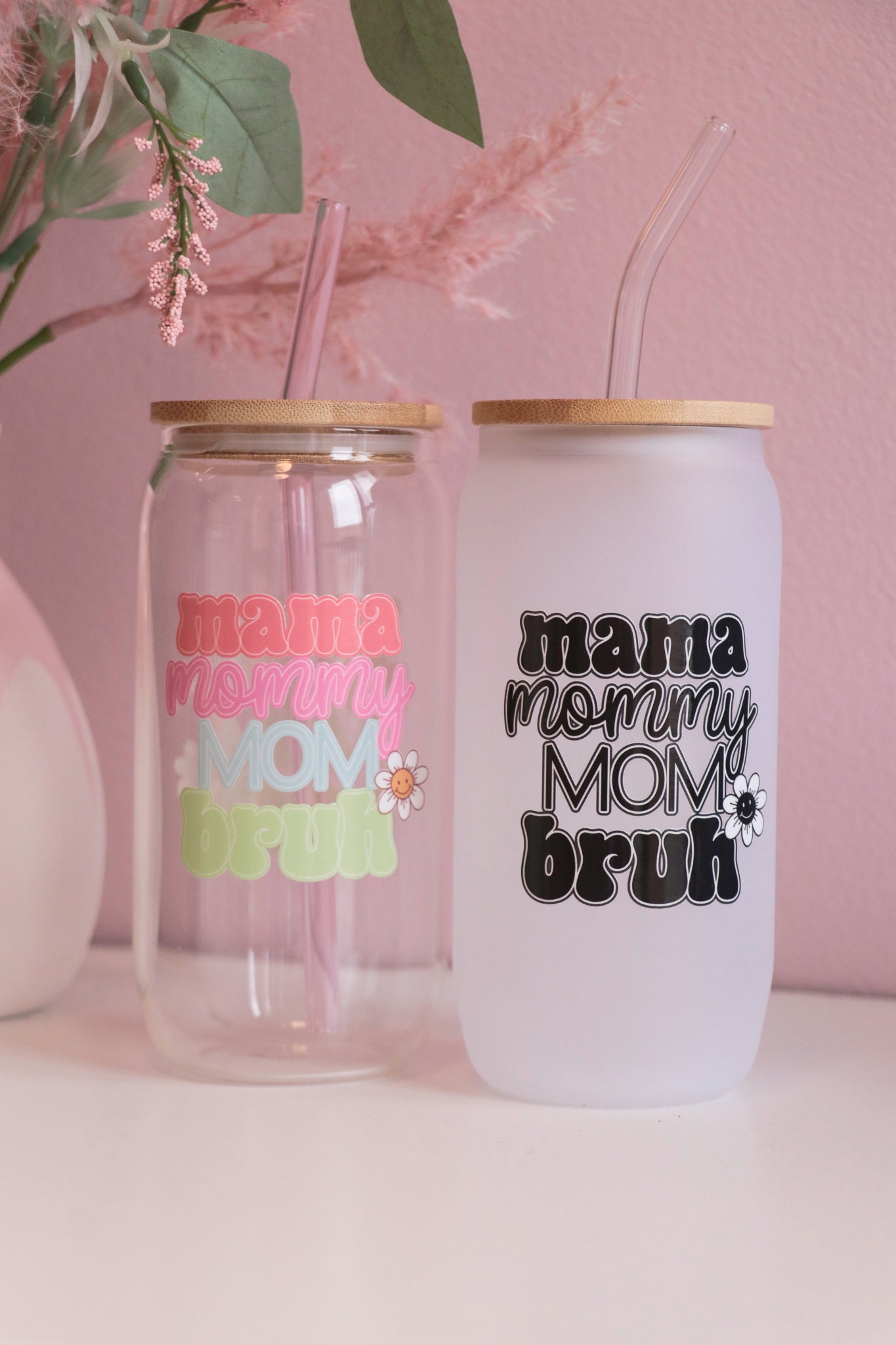 Featuring a custom printed UV-DTF graphic and available in a clear or frosted glass with your choice of pink or clear straw