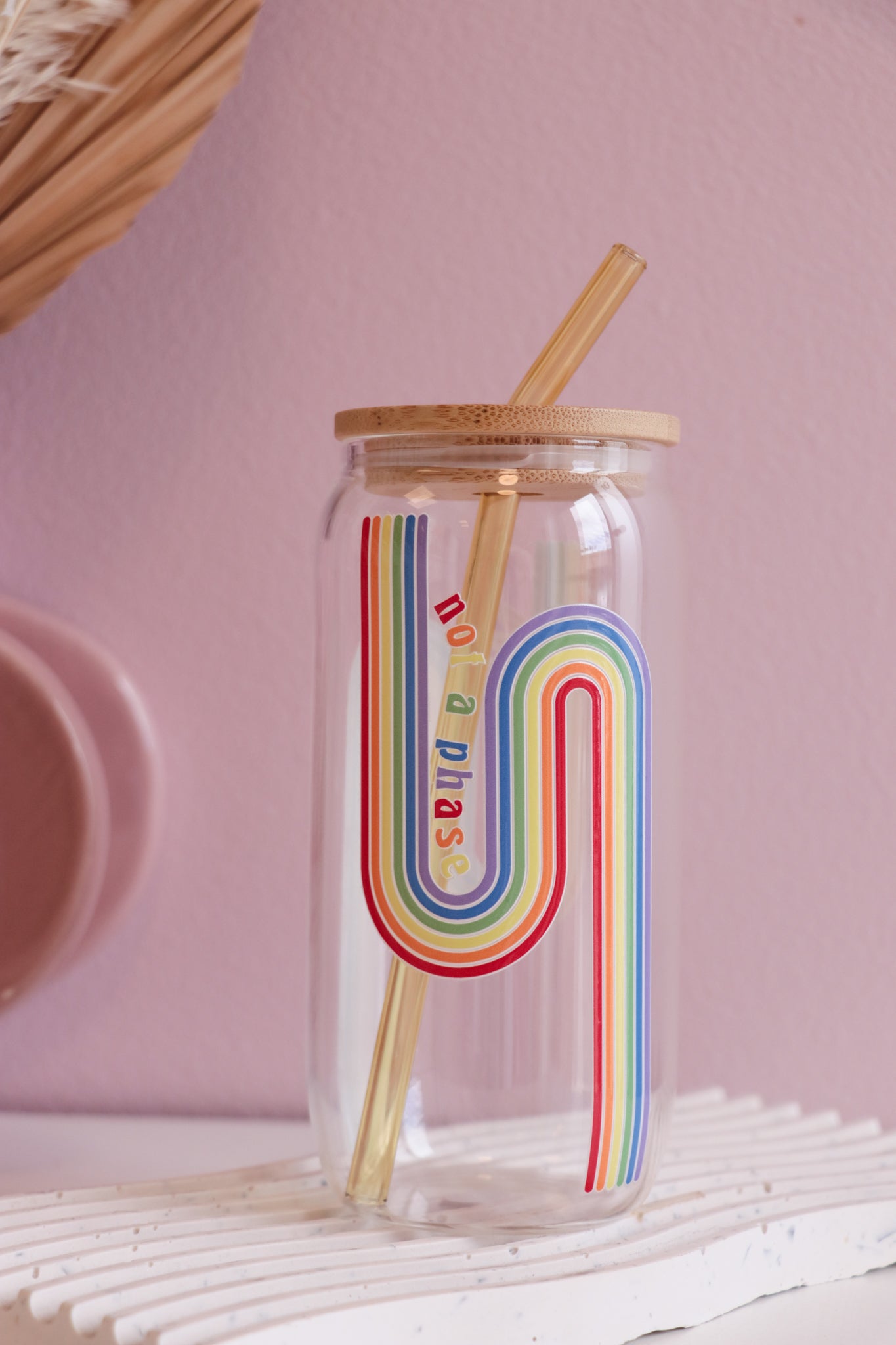Featuring a custom printed UV-DTF graphic and available in a clear or frosted glass with your choice coloured straw.
