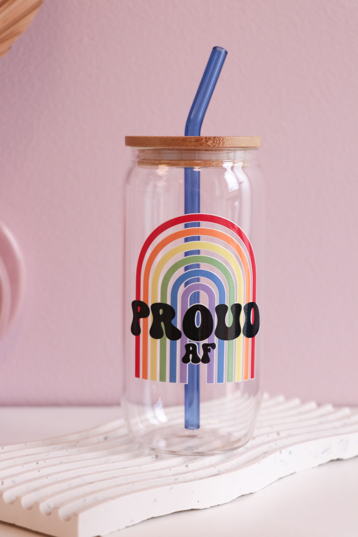 Featuring a custom printed UV-DTF graphic and available in a clear or frosted glass with your choice coloured straw.