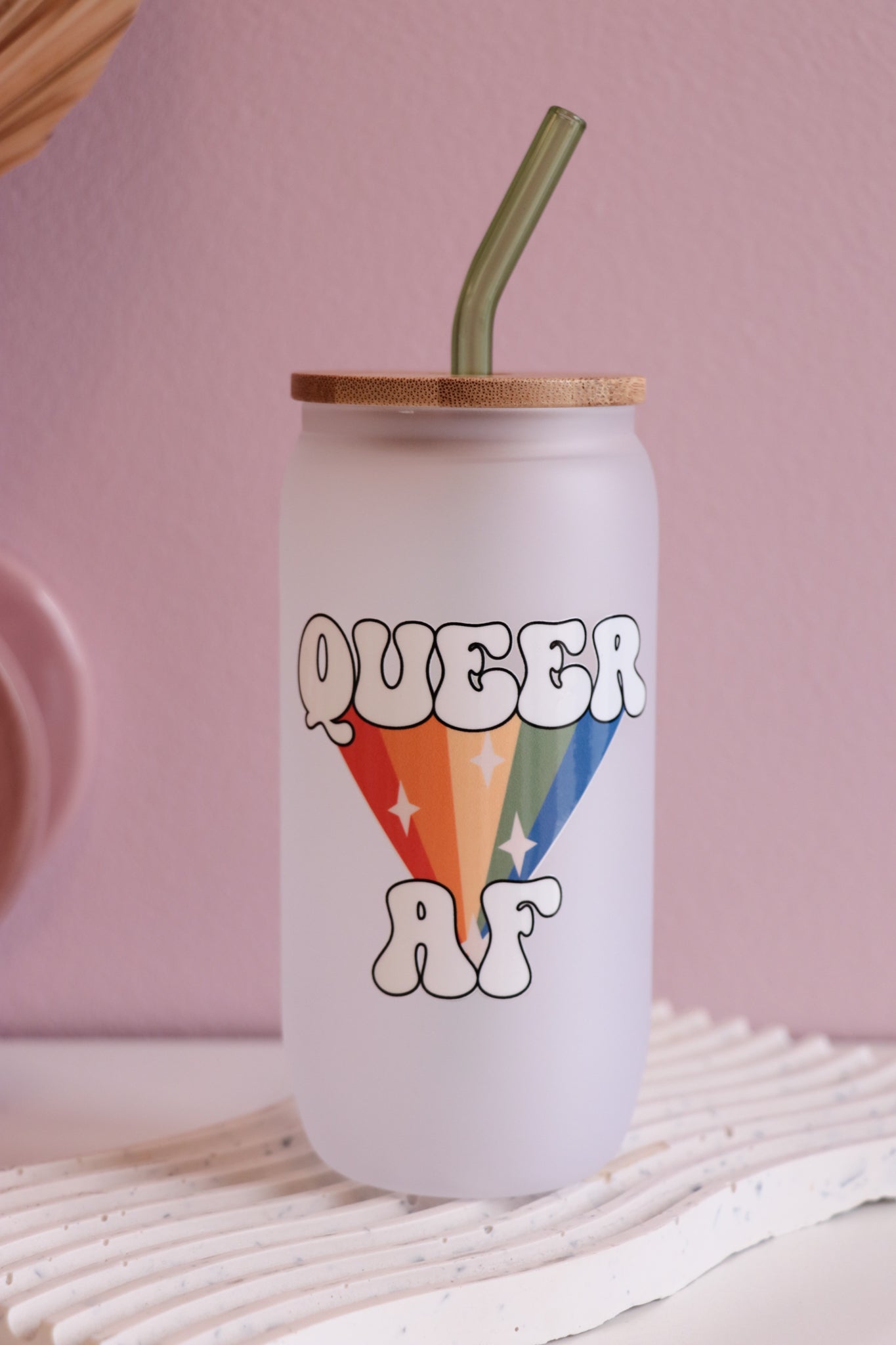 Featuring a custom printed UV-DTF graphic and available in a clear or frosted glass with your choice coloured straw.