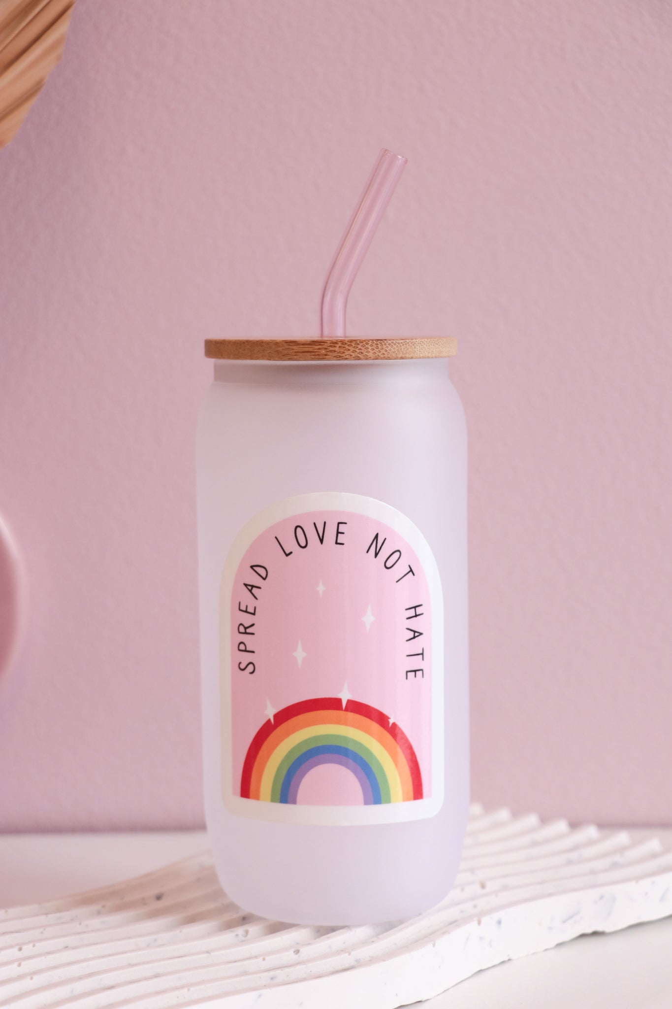 Spread Love, Not Hate Glass with Bamboo Lid + Straw