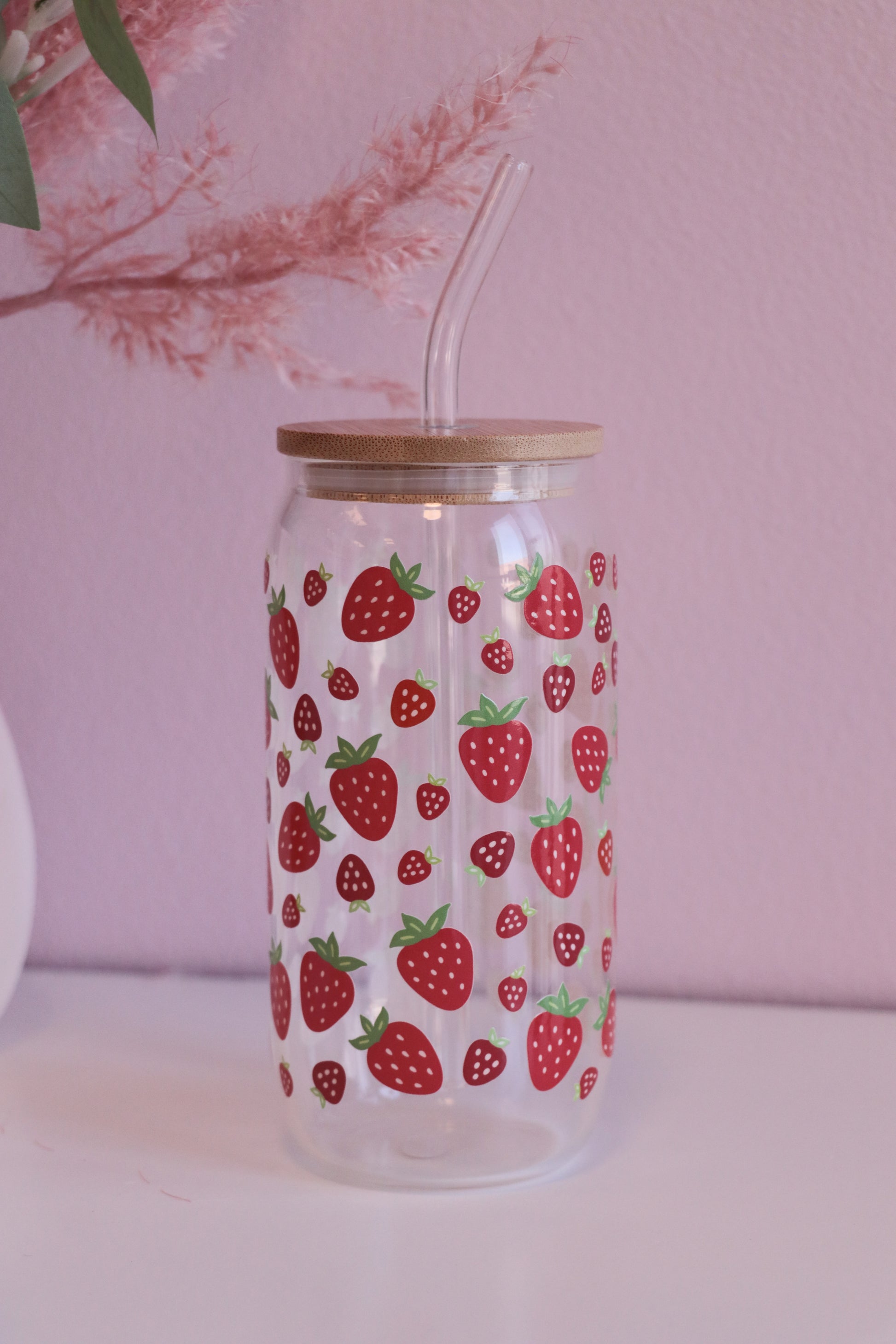 Featuring a custom printed UV-DTF graphic and available in a clear or frosted glass with your choice of pink or clear straw