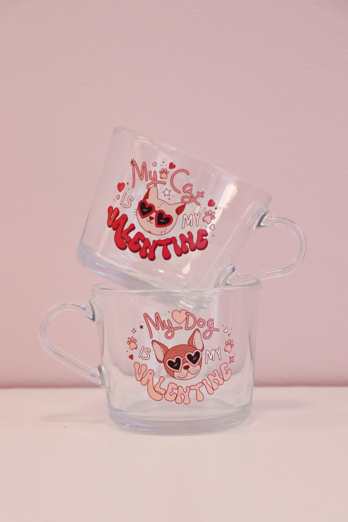 Celebrate valentines day with these adorable Dog + Cat valentine glasses! Features my new custom UV printed film decal
